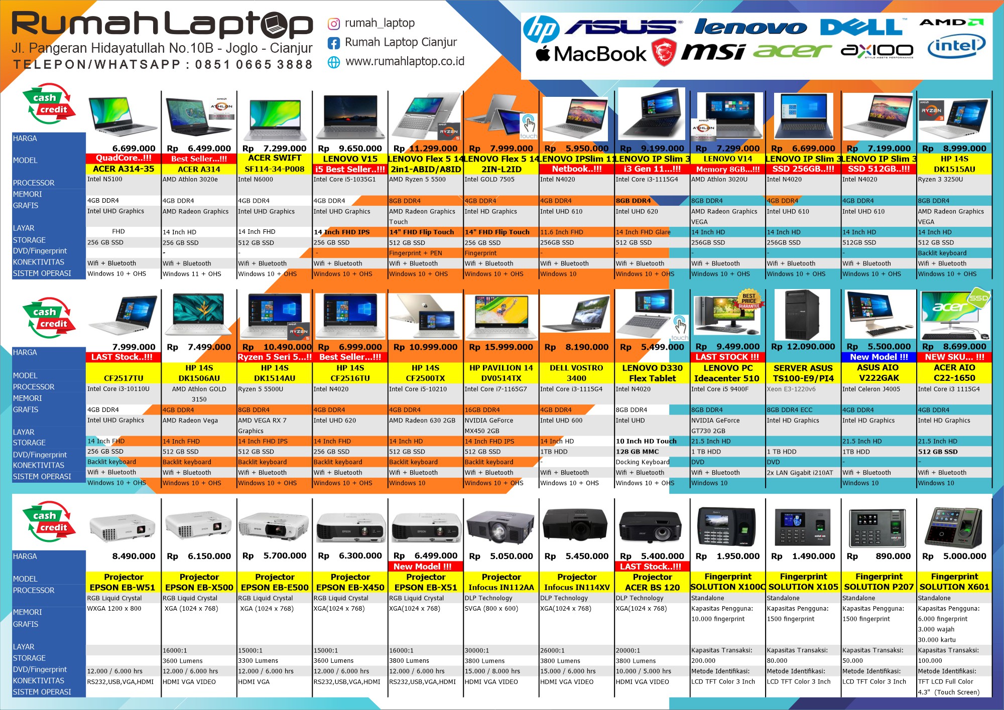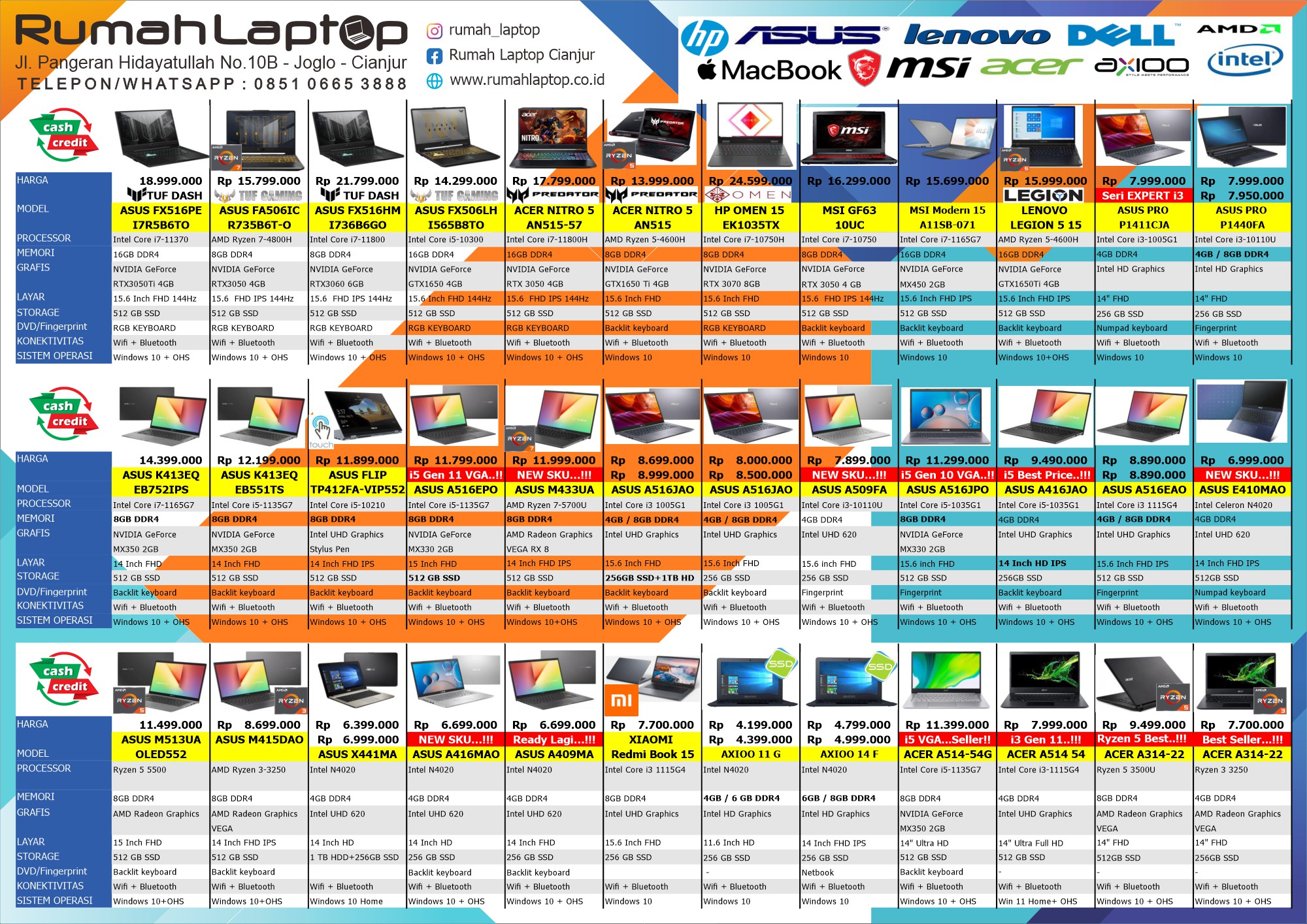 Dibawah ini adalah brosur Laptop di Rumah Laptop